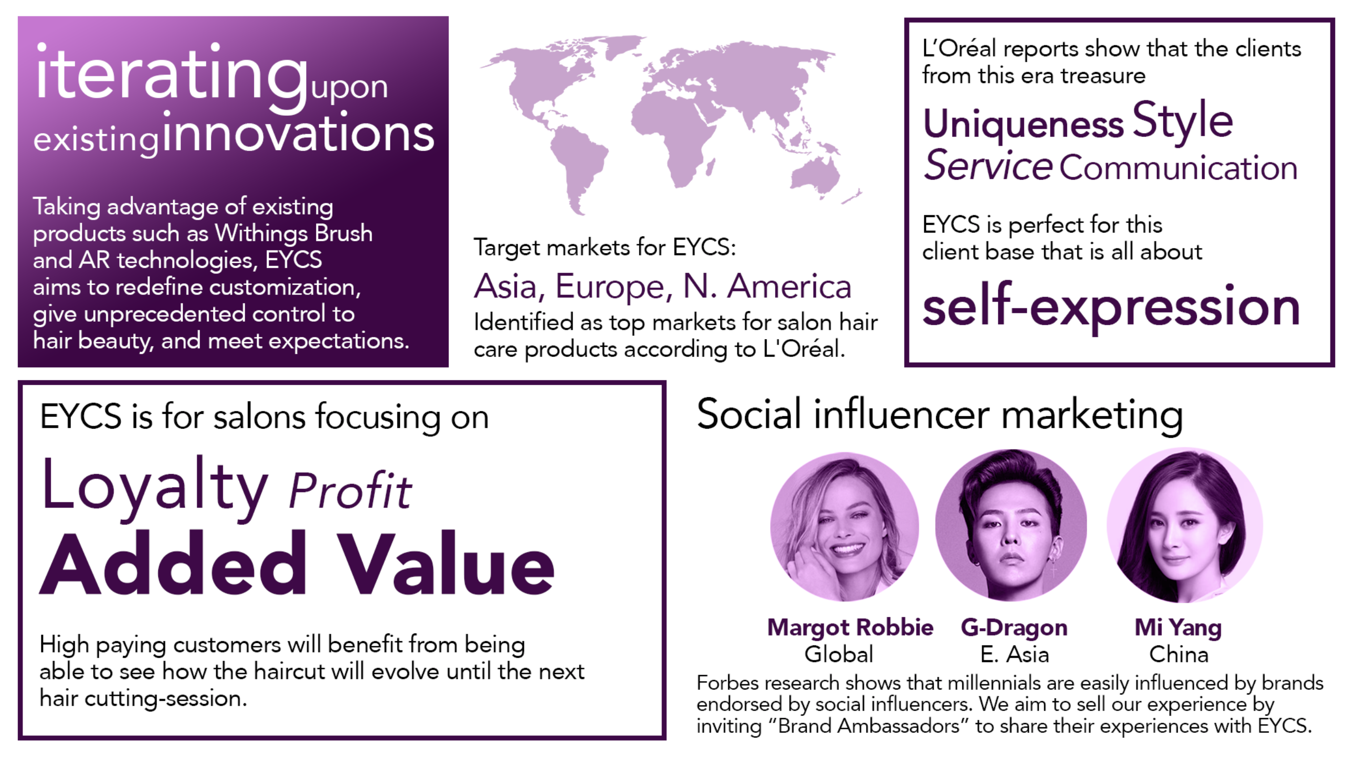 Have you ever had the experience that you wished you’d never come to this hair salon? Have you had the feeling that this new hair look ruined your life? Have you been annoyed because the color you just dyed has gone away so quickly? Have you yelled at the moment you left the salon? I have the experience myself several times, and this project (Loreal Brandstorm 2018) gives me a chance to make deep exploration. The goal for the project is to improve customers’ salon experience in order to build a long-term relationship with the customers and to further increase the brand loyalty. We have come up with an one-stop system to simulate the hairdressing outcome and later store the information in an assisting app.